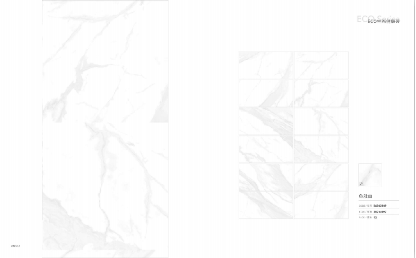 ECO生态健康瓷砖,分为2大系列产品,专为厨卫空间而生的ECO健康瓷墙砖,专为中高端住宅全屋打造的ECO健康通体花季传媒污。